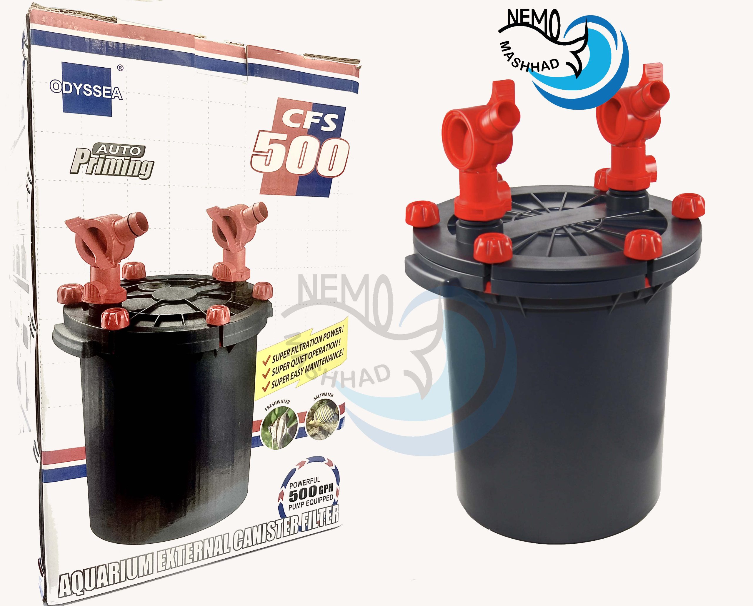 فیلتر سطلی آکواریوم Odyssea CFS-500 از سری فیلترهای خارجی برند Odyssea است که با طراحی کمجا و نصب آسان، فضای داخلی آکواریوم را اشغال نمیکند. این فیلتر با توان مصرفی ۲۲ وات و دبی ۱۵۰۰ لیتر در ساعت، برای آکواریومهای آب شیرین و شور با حجم ۱۵۰ تا ۲۵۰ لیتر مناسب است. سیستم فیلتراسیون این فیلتر شامل مراحل مکانیکی، بیولوژیکی و شیمیایی است که به حفظ کیفیت آب و سلامت آبزیان کمک میکند. همچنین، این فیلتر دارای قابلیت تنظیم جریان آب و عملکرد کمصدا میباشد.