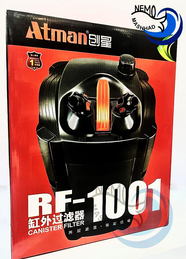 فیلتر سطلی آکواریوم آتمن مدل RF-1001 از سری فیلترهای خارجی برند آتمن است که با طراحی کمجا و نصب آسان، فضای داخلی آکواریوم را اشغال نمیکند. این فیلتر با توان مصرفی ۲۲ وات و دبی ۱۵۰۰ لیتر در ساعت، برای آکواریومهای آب شیرین و شور با حجم ۱۵۰ تا ۲۵۰ لیتر مناسب است. سیستم فیلتراسیون این فیلتر شامل مراحل مکانیکی، بیولوژیکی و شیمیایی است که به حفظ کیفیت آب و سلامت آبزیان کمک میکند. همچنین، این فیلتر دارای قابلیت تنظیم جریان آب و عملکرد کمصدا میباشد.