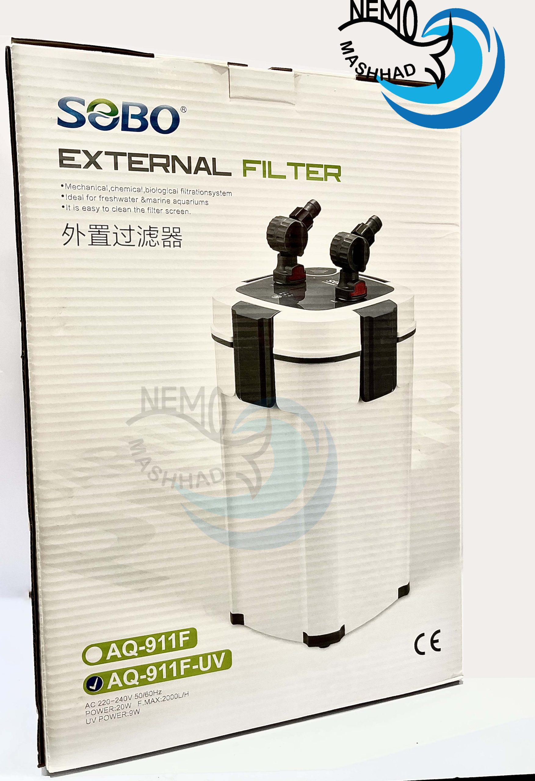 فیلتر اکسترنال Sobo AQ-911F UV یک سیستم تصفیه جامع است که علاوه بر عملکرد مکانیکی و بیولوژیکی، با افزودن لامپ UV به روند تصفیه، به از بین بردن باکتری‌ها، جلبک‌ها و عوامل بیماری‌زا کمک می‌کند. این مدل با دبی 1600 لیتر بر ساعت و پنج سبد فیلتر مجزا، برای آکواریوم‌های بزرگ تا 500 لیتر مناسب است. طراحی قدرتمند و نصب آسان آن همراه با عملکرد بی‌صدا، از ویژگی‌های برجسته این محصول محسوب می‌شود. استفاده از UV علاوه بر تصفیه موثر، موجب کاهش رشد آلودگی‌های میکروبی در آب می‌شود.